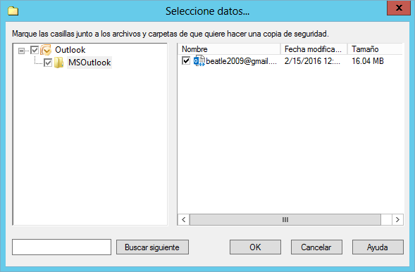 Handy Backup puede hacer un backup de Outlook 2013, 2010 y otras versiones, junto con Outlook Express y también puede realizar copia de seguridad de MS Exchange. Además, puede respaldar datos desde Windows Mail. Los datos incluyen no sólo correos electrónicos, sino también cualquier otros datos de Outlook.