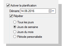 Un planificateur flexible simplifie le plan de sauvegarde. On peut définir automatiquement les tâches de sauvegarde/restauration sur la base des heures et des mois. Il est possible modifier l'horaire de sauvegarde pour répondre aux besoins spécifiques. Est disponible l'exécution de la sauvegarde avec la session connectée/fermée.