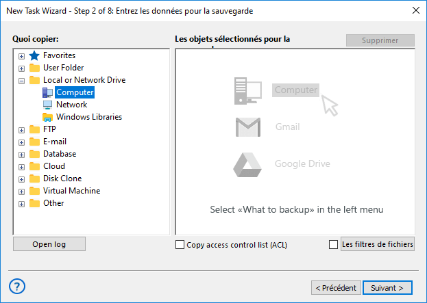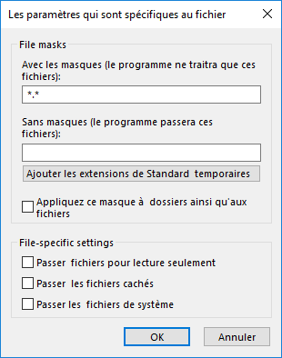 La sélection des fichiers à sauvegarder peut être effectuée à l’aide de filtres : vous définissez un masque par nom de fichier ou par format. Les filtres peuvent être utilisés aussi bien pour inclure que pour exclure des fichiers.