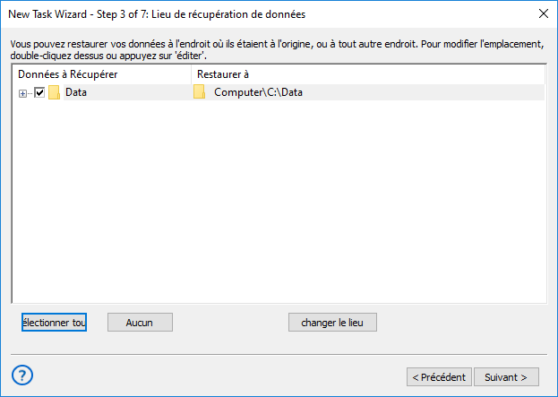 Handy Backup permet la restauration des données à partir d’une sauvegarde. Les données peuvent être restaurées soit à leur emplacement d’origine, soit à un autre emplacement choisi par l’utilisateur.