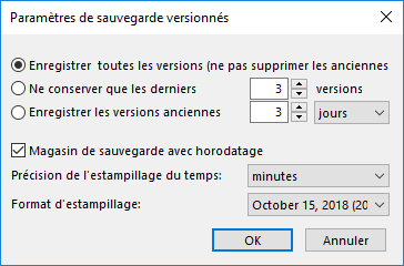 Dans Handy Backup, il est possible de configurer l’horodatage des archives de sauvegarde : définir la précision temporelle, le format, ainsi que le nombre de copies conservées.